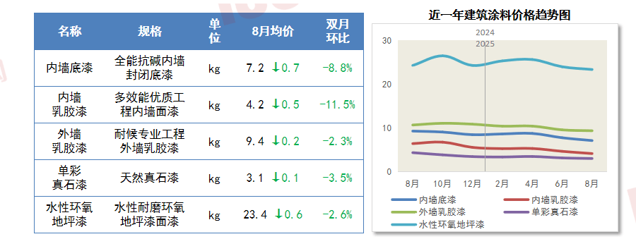正在“反内卷”政策持续鞭策下。开辟投资进行计谋性收缩,看法强调,目前囊括13种常见材料价钱,国办转发家政部《关于规范和社会本钱合做存量项目扶植和运营的指点看法》,内墙底漆降幅次之,2025年8月,8月份,